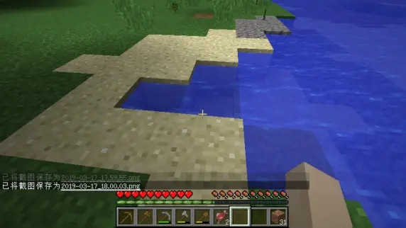 是不是有点样子了呢,现在我们去找一下附近有没有沙子,沙子放入熔炉冶炼可以获得玻璃,它是一种非常不错的装饰材料。
