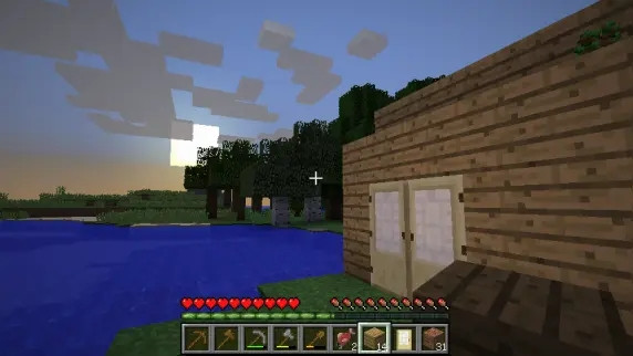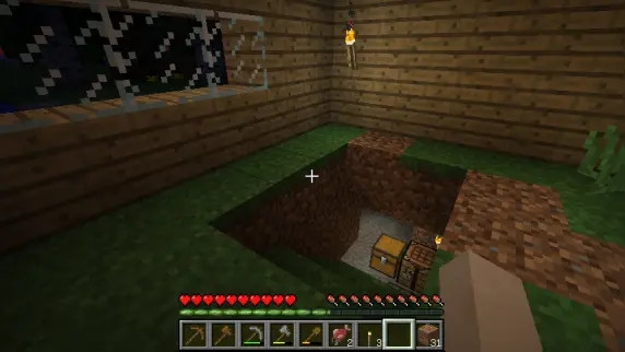 我们把刚刚烧好的玻璃放在提前准备好的窗户处,这样,我们的第一夜就可以在欣赏野外的风光中度过,或者是安安稳稳的在地下开采一晚了!而且,我们可以在以后的发展中进一步改良我们的小小庇护所,这一切都看你的啦!小伙伴们!