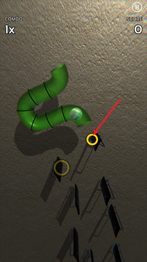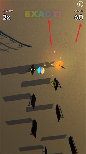 2、进入之后点击屏幕即可开始挑战,当我们的球靠近落点的时候,根据光圈的大小来判断点击实机。