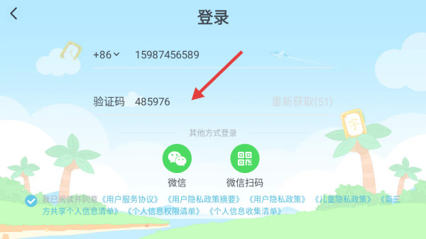 3、收到验证码,填入验证码栏完成登录验证。
