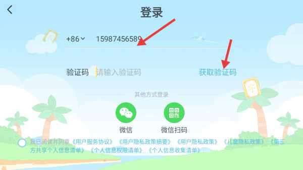 2、登录页输入手机号后,点击【获取验证码】等待接收。