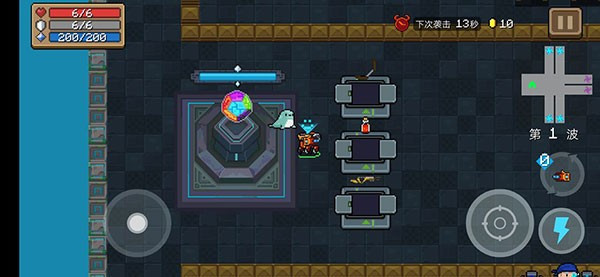 如上图左手边就是我们要守卫的魔法石了,注意当魔法石血量降为零的时候游戏就将结束,因此请守卫好这位爷(反正怪物基本上摸不着它,因为会优先攻击路径上最近的建筑群,因此一定会先拆炮台,不用担心有怪物偷塔) 右手边是每波怪物来之前会刷新的宝箱X3(虽然只能挑一个)一般都是两个武器+一个药瓶,不论拿不拿都会在每波结束时全部刷新,因此拿了不亏(注意武器掉落在地面时,一段时间内不捡取会消失(惨痛教训)因此注意千万随便丢主要使用的武器)