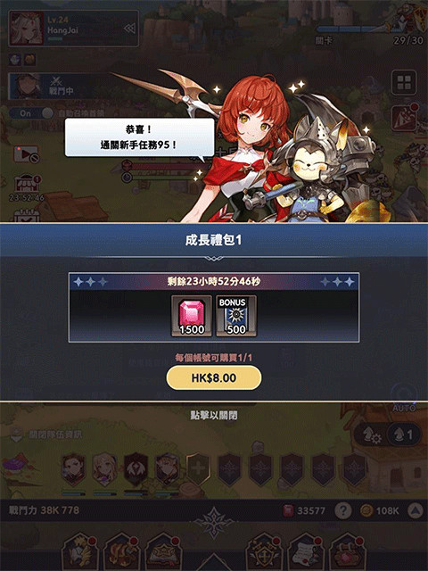 早期基本上跟着画面中央的「指引」做便可,要优先提升「影响力」,直接选+100便可不用逐次逐次笃。每日任务和每日副本是重要的收入来源,一定要做齐;用模拟器玩或是不介意用手机/平板挂机的玩家也可以在游戏中看广告,能获得一些红宝石。
