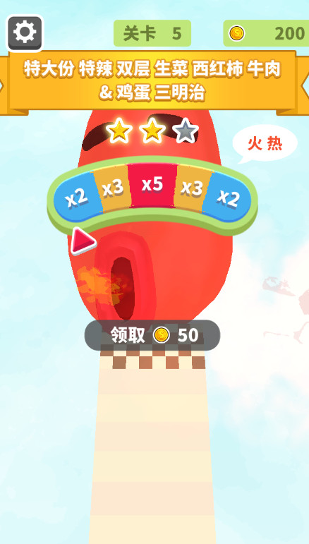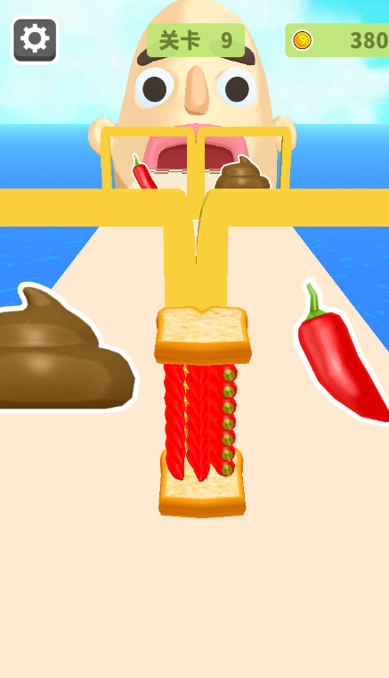 疯狂冲冲冲是一款休闲闯关类小游戏,玩家在赛道中控制角色前进,通过滑动屏幕调整方向,收集沿途出现的蔬菜、肉类和配料等食材。关卡目标是根据需求组合出对应口味的汉堡或三明治获取分数,玩法围绕跑动与收集搭配展开。