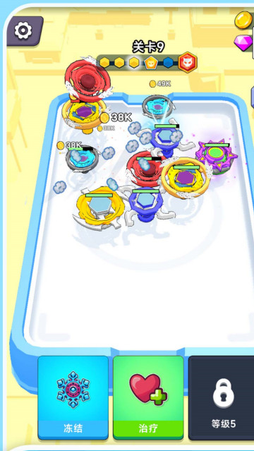 2、场上每一次的比拼都很重要,不仅需要陀螺等级更高,陀螺的数量也很重要,你可以利用你在赛场中赢得的金币,来获取到更多数量的陀螺!