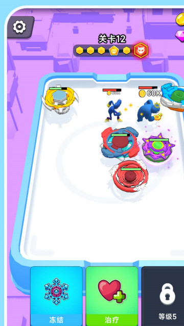 3、游戏操作简单,只需要你对将普通的陀螺进行合成,将它们变成更高级强大的陀螺,就可以上场与敌人进行比拼,