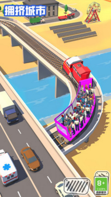 《拥挤城市》是一款游乐园模拟经营游戏。游戏中,玩家将驾驶小火车在城市中穿行,将他们安全接送到游乐园。