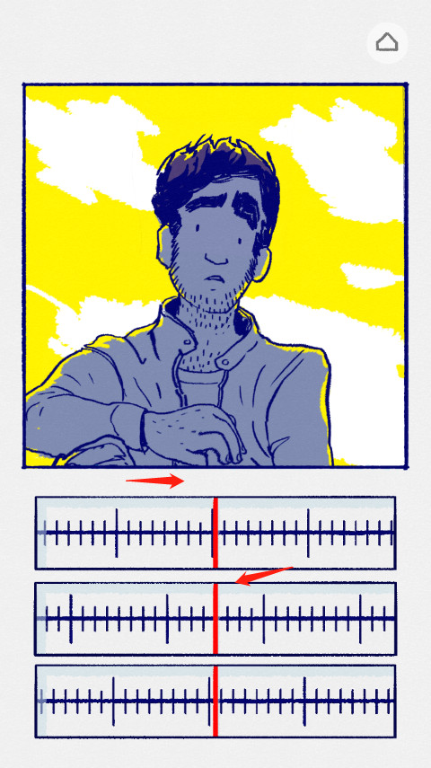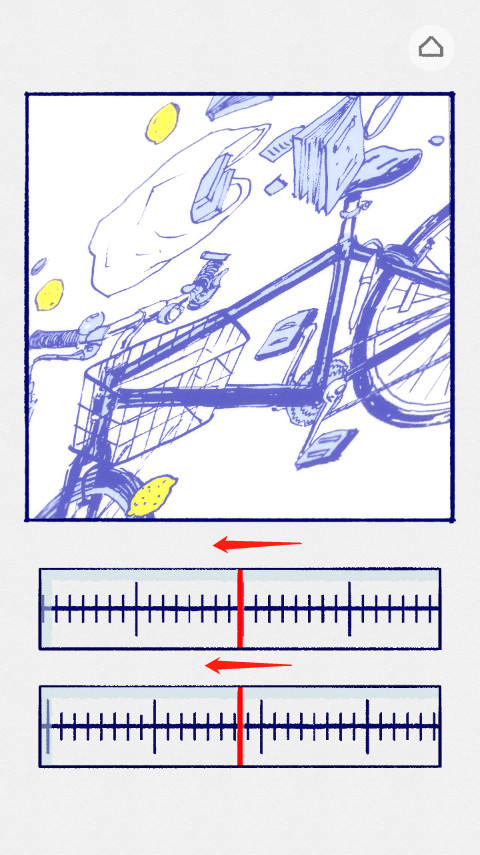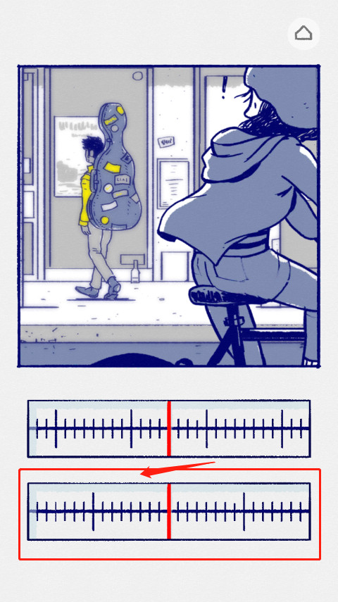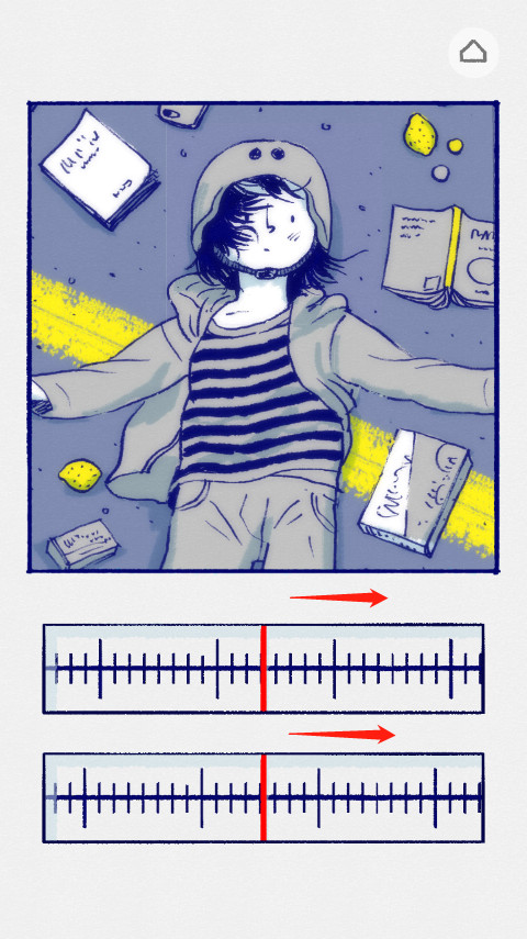 2、故事开头,小女孩看到后面有车来了,画面很不清晰,让我们把上面的刻度向右滑,直至肉眼看着最清楚的那个位置,一般都为刻度的最长的那根线或者中间的那根线,下面那个刻度尺向左滑,整个画面都高清后,就会进入下个画面。