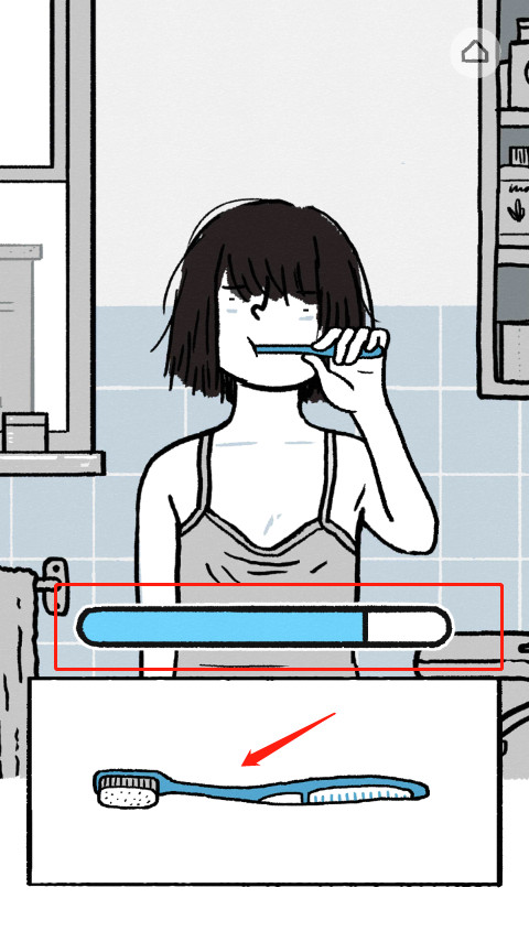 4、起晚了,得赶紧刷牙,点击下面的牙刷左右晃动直到上面的进度条满了。