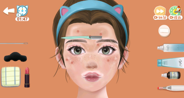 2、游戏包含了很多玩法,有脸部清洁、头发护理、菜刀翻转等。