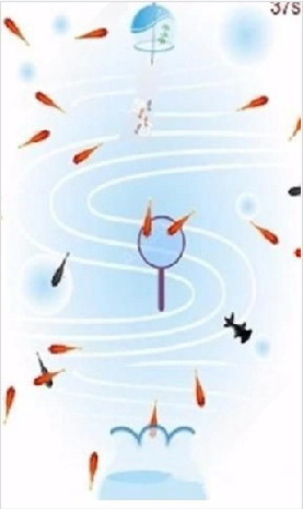 2、玩家手持小网,在有限时间内,凭借自己的动手能力和反应速度,尽可能多地将小金鱼捞起,感受捞鱼的紧张刺激。