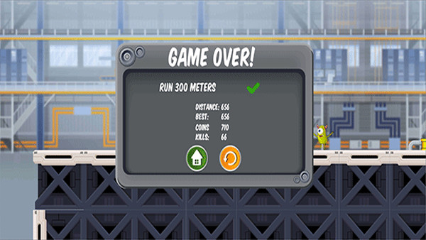 1、进入游戏后,屏幕会显示当前关卡的目标。右侧按钮控制小黄人跳跃,左侧按钮用于射击。