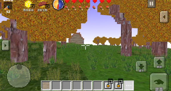 3、熟悉几个基本的按键,有蹲下、跳跃和放置,然后去自由探索。