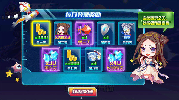 1、进入游戏后,可以点击领取每日登入奖励;