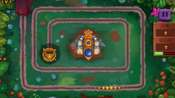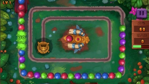 1、操控屏幕中央的发射器,通过旋转瞄准,将彩球发射到不断向前滚动的球链中,使其与相邻的球颜色匹配。