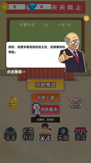 1、点击开始游戏,进入学校面对不同考验,学生主要去学习。