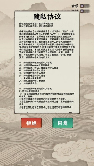 1、下载游戏后,需要你先同意隐私协议,才能进入游戏;