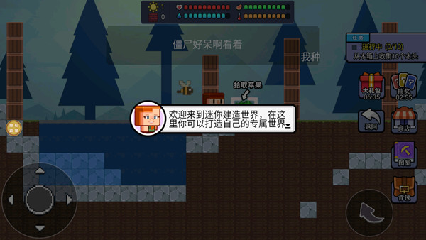 2、遇见友善的NPC、驯服宠物,或对抗僵尸、骷髅敌对生物,让冒险充满变数。