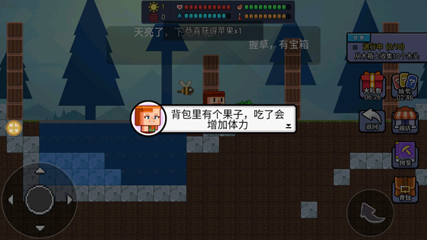 3、拖动点击查看背包,里面的果子都会帮助你补充体力。