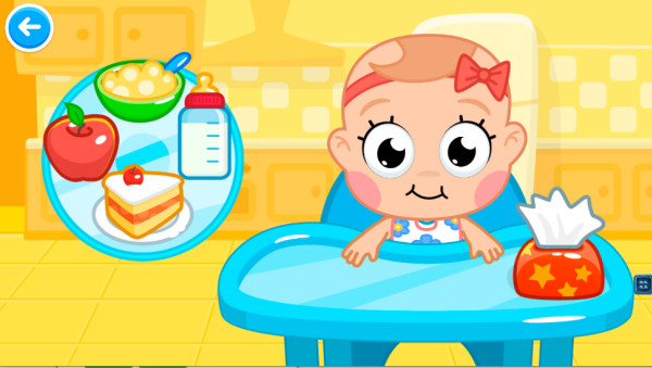 2、点击奶瓶和各种食物,给宝宝想要的食物,填饱肚子,开始新的任务。