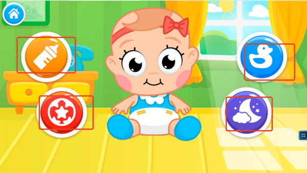 1、进入游戏,你的任务就是照顾宝宝,根据宝宝的需求点击按钮。