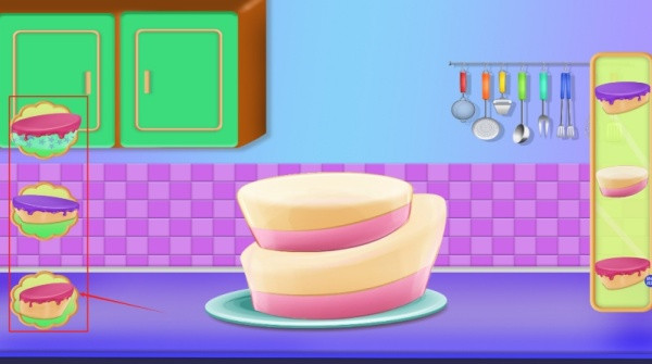 4、选择左侧的蛋糕材料,然后一层一层的制作出美味的蛋糕。