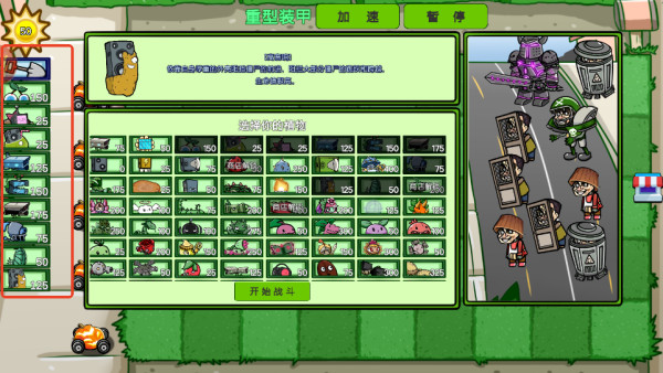 2、多个任务供你选择,选择你的植物,了解每个植物的特性,开始战斗。