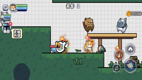 2、右下角可以移动小猫咪,在这里控制着猫咪跳跃闯关,躲避各种敌人;