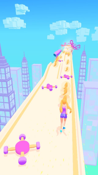 1、控制理发师角色在街头奔跑,躲避各种障碍物,如断桥、陷阱、行人等,同时收集发型材料和金币,保持高速奔跑。