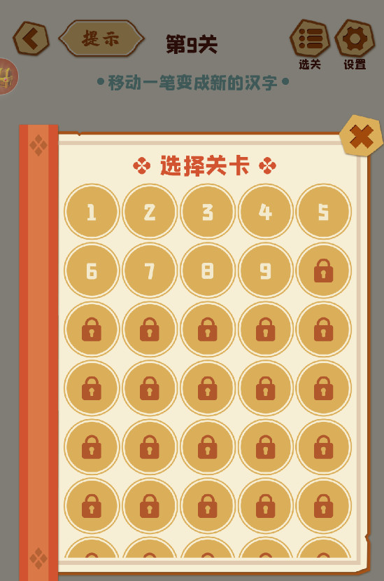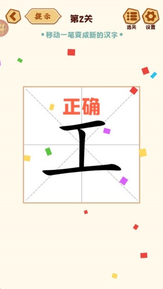5、通过移动汉字笔画变成新字,锻炼玩家词汇、逻辑和创造力