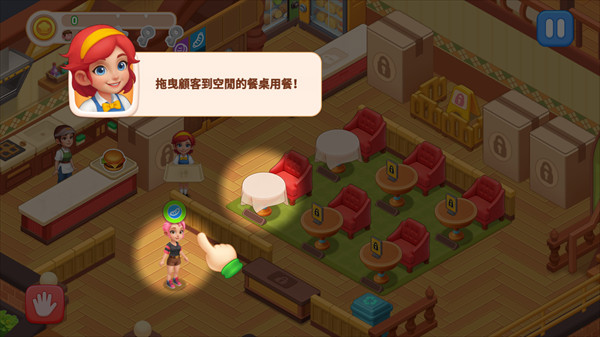 1、滑动屏幕来拖拽顾客到餐桌准备用餐,一起开启你的餐厅经营之旅。
