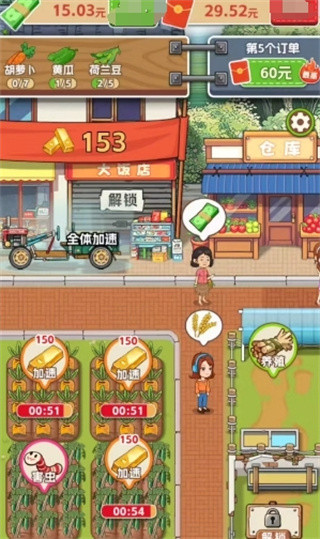 1、独特的生财系统,玩家不仅能种菜卖菜,还能解锁加工坊,制作高附加值产品,赚取更多金币。