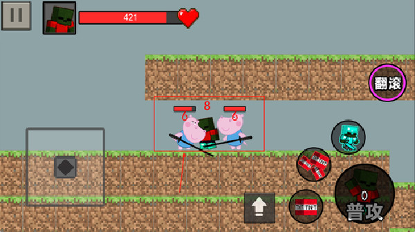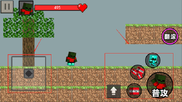 2. 游戏的左上角是你的血条,左边是虚拟键盘,右边是攻击与跳跃的按键。
