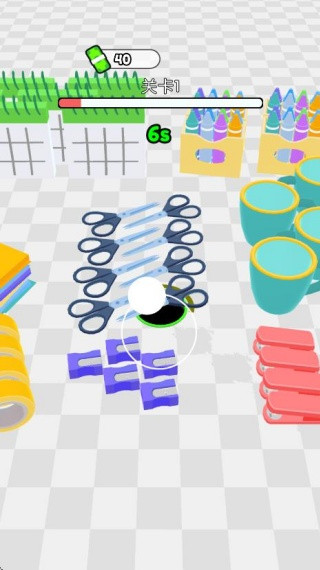 2、按住黑洞,左右的移动,即可操控黑洞将界面的物品全部吃掉;