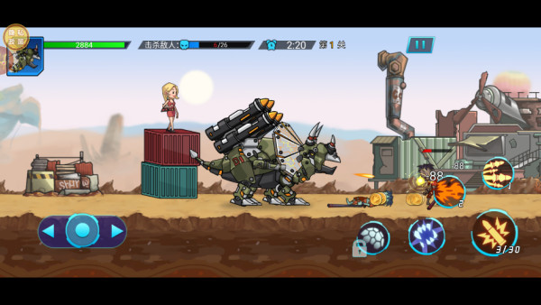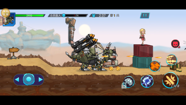 1.刚开始,你就已经是一头机甲龙了,左边控制移动方向,右边控制各种攻击模式,比如撕咬、子弹等等。