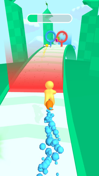 2.跟随前面黄色小球的指引,越过一道道关卡。