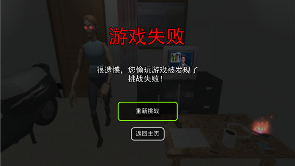 2、被伪人抓到之后就会导致游戏挑战失败,点击重新挑战即可继续开始任务。