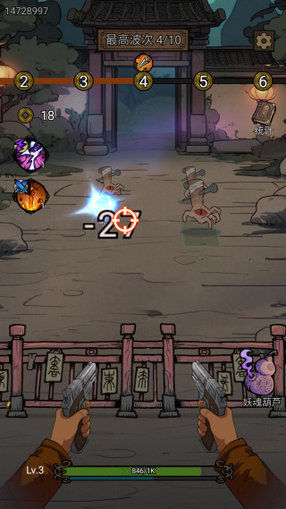 2、使用基础符咒进行连射,积攒能量释放强力法宝技能,合理搭配不同属性法术克制特定妖怪。