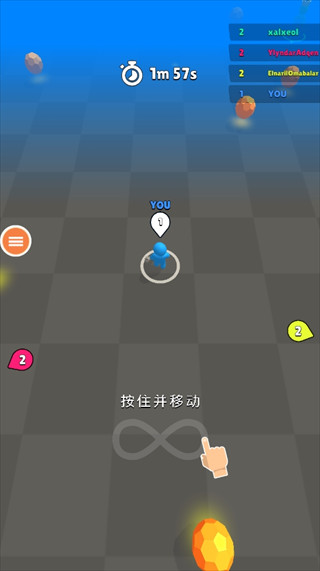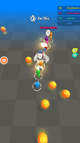 3、在人类前进的过程中需要快速吞噬小球,扩大你的人群阵容哦。