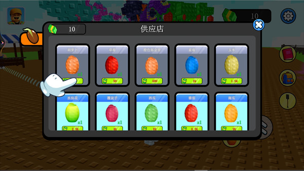 4、选择右下角的供应店,这里面有各种不同的种子,你可以用绿钞购买。
