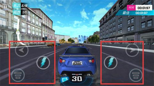 2、比赛中使用左右方向键控制转向,按下闪电图标进行加速,在名次靠后如56时提速可迅速提升排名。