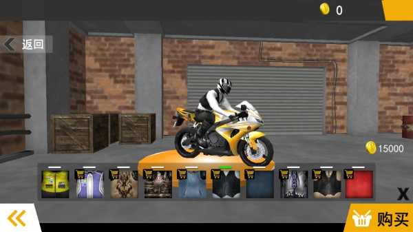 1、进入游戏后,玩家可以挑选摩托车进行挑战,给你的车辆喷涂不同颜色车漆,更有超多机车服装解锁使用。