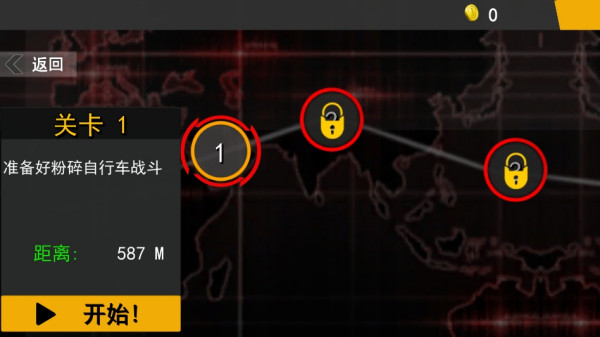 2、多个关卡逐步解锁挑战赢取金币,了解每个关卡的竞速任务,做好暴力摩托竞速的准备。