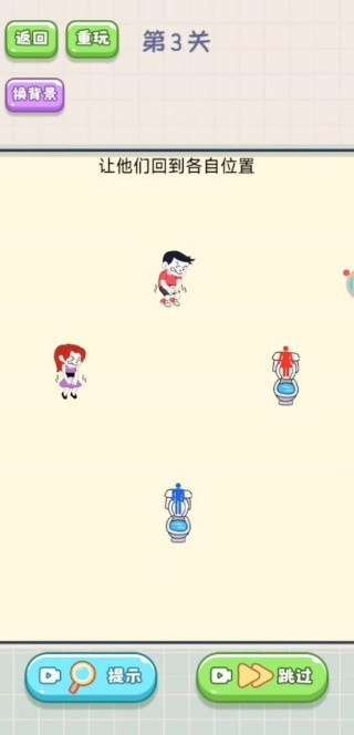 1、进入游戏后,需要帮助小女孩和小男孩找到正确的厕所;