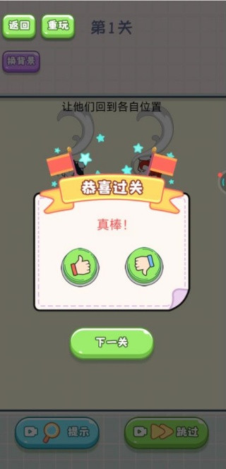 4、每次成功的过关,自动解锁下一关,如果不会,可以点击提示获得。