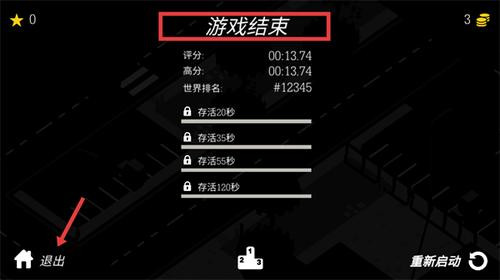 4、游戏结束后系统会根据逃亡时长与表现给出评分,点击退出即可返回主菜单或重新尝试刷新纪录。