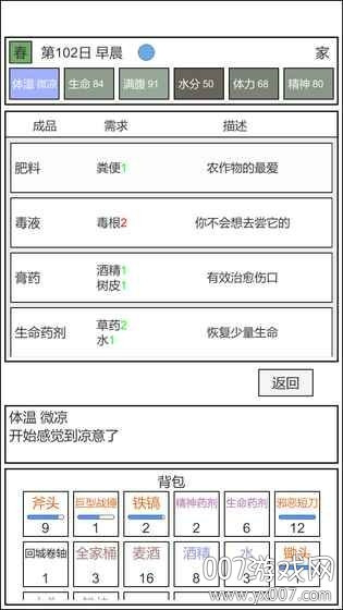 4、关键点在于第一个冬天前需囤够水和木头,否则容易失败。