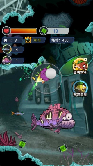 2、带来许多丰富有趣的挑战游戏,快速找到较弱的鱼吃;