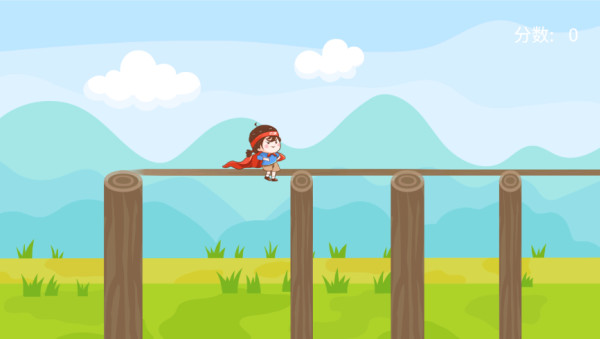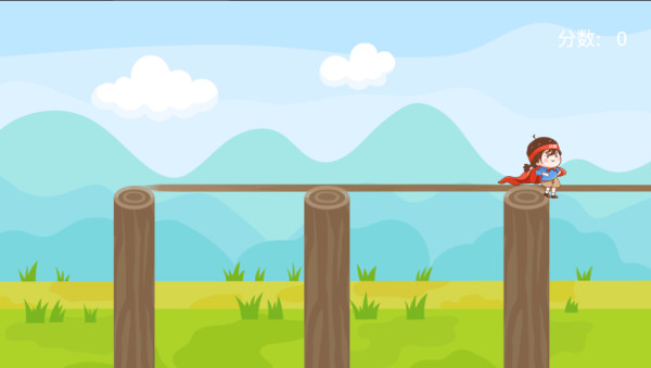 1、进入游戏点击开始,控制游戏中的主角开始闯关,在木桩之间搭木板。