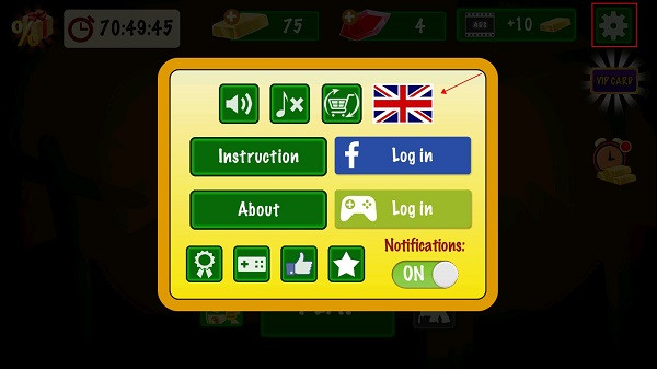 进入游戏后,点击右上角的“齿轮”位置处,打开设置,找到国旗。